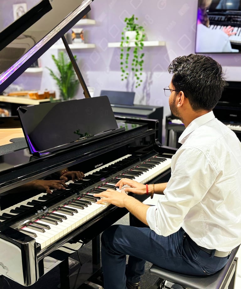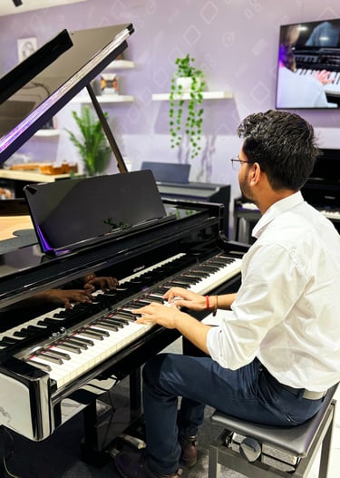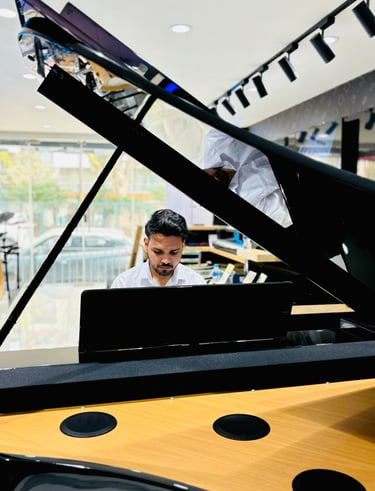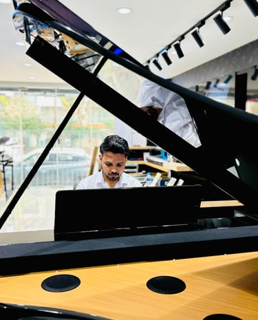 Aaditya Sharma is a professional pianist, guitarist, singer-songwriter, and music educator, certified by Trinity College London. With years of experience in live performances, original compositions, and music education, his journey blends technical mastery with deep musical expression.